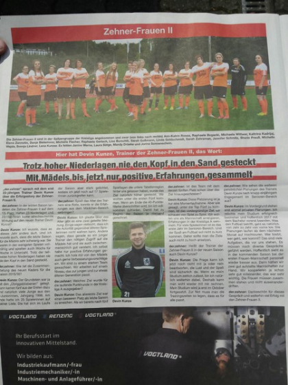 ein Lob aus, hoben Nadine Scholl die das erste Spiel für die „Zehnerinnen“ machte und Kristine Römer aber noch heraus. Das war heute ein gutes Spiel. Selbst nach dem Ausgleich wurde ruhig